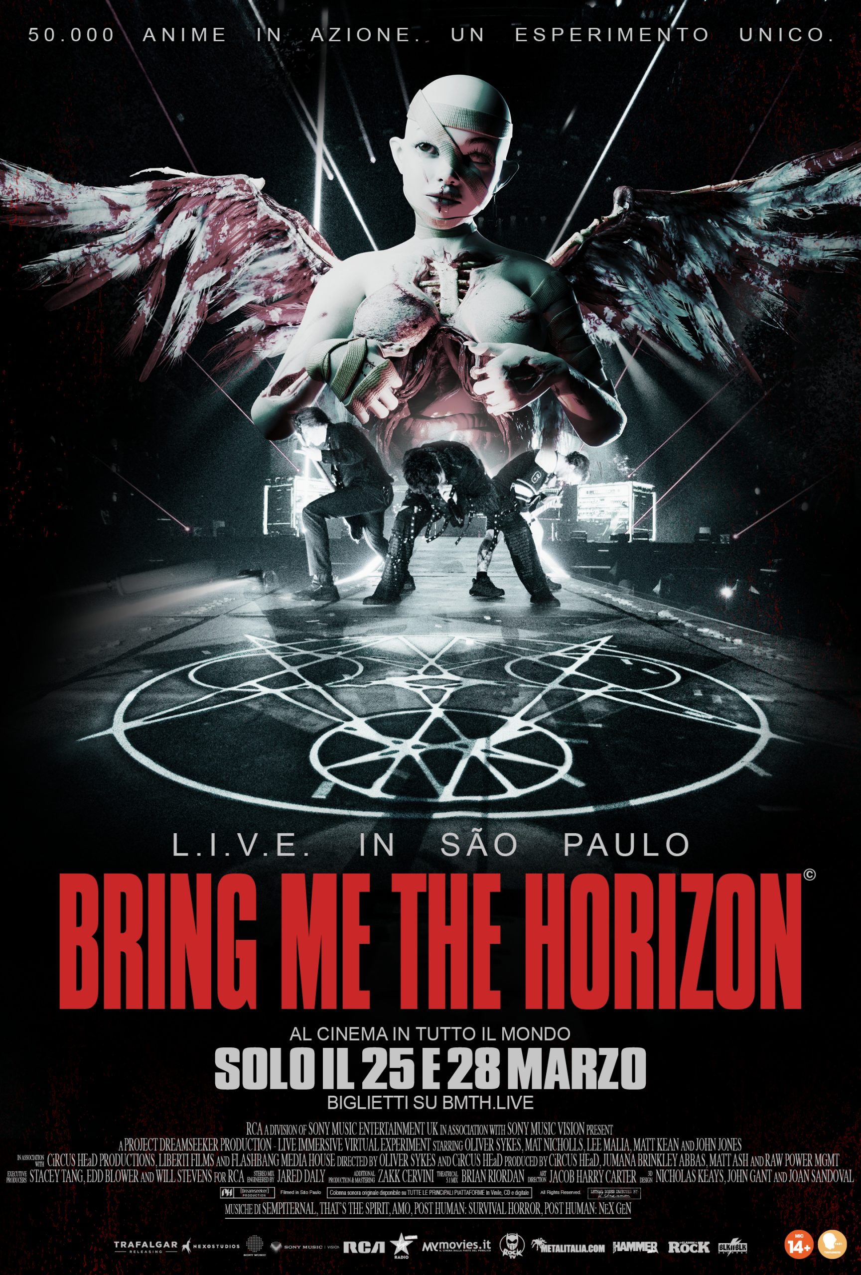 Bring Me The Horizon: L.I.V.E. in São Paulo (Live Immersive Virtual Experiment) sarà proiettato nei cinema di tutto il mondo solo per due giorni, il 25 e il 28 marzo, con biglietti in vendita dall’11 febbraio alle ore 15.00. L’evento è presentato da Trafalgar Releasing, insieme a Sony Music Vision e RCA.